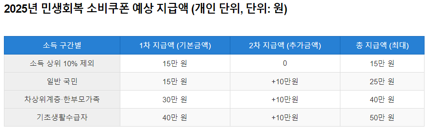 민생회복 소비쿠폰, 누가 얼마를 받을까? (소득 구간별 차등 지급! 📊)